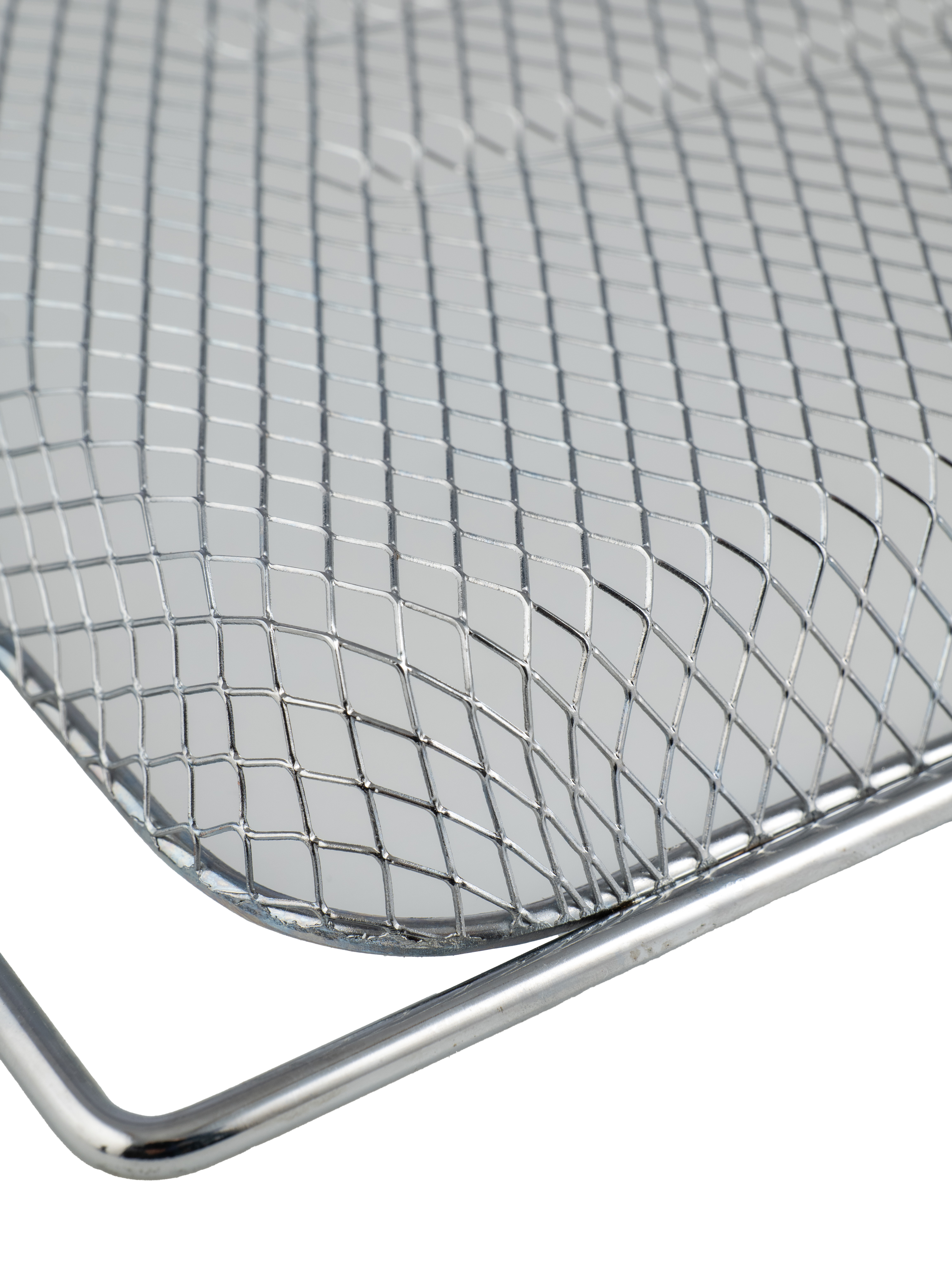 Решетка выполнена из прочной нержавеющей стали, которая устойчива к коррозии и легко очищается. Компактный дизайн позволяет равномерно распределять продукты внутри устройства, обеспечивая равномерное нагревание.