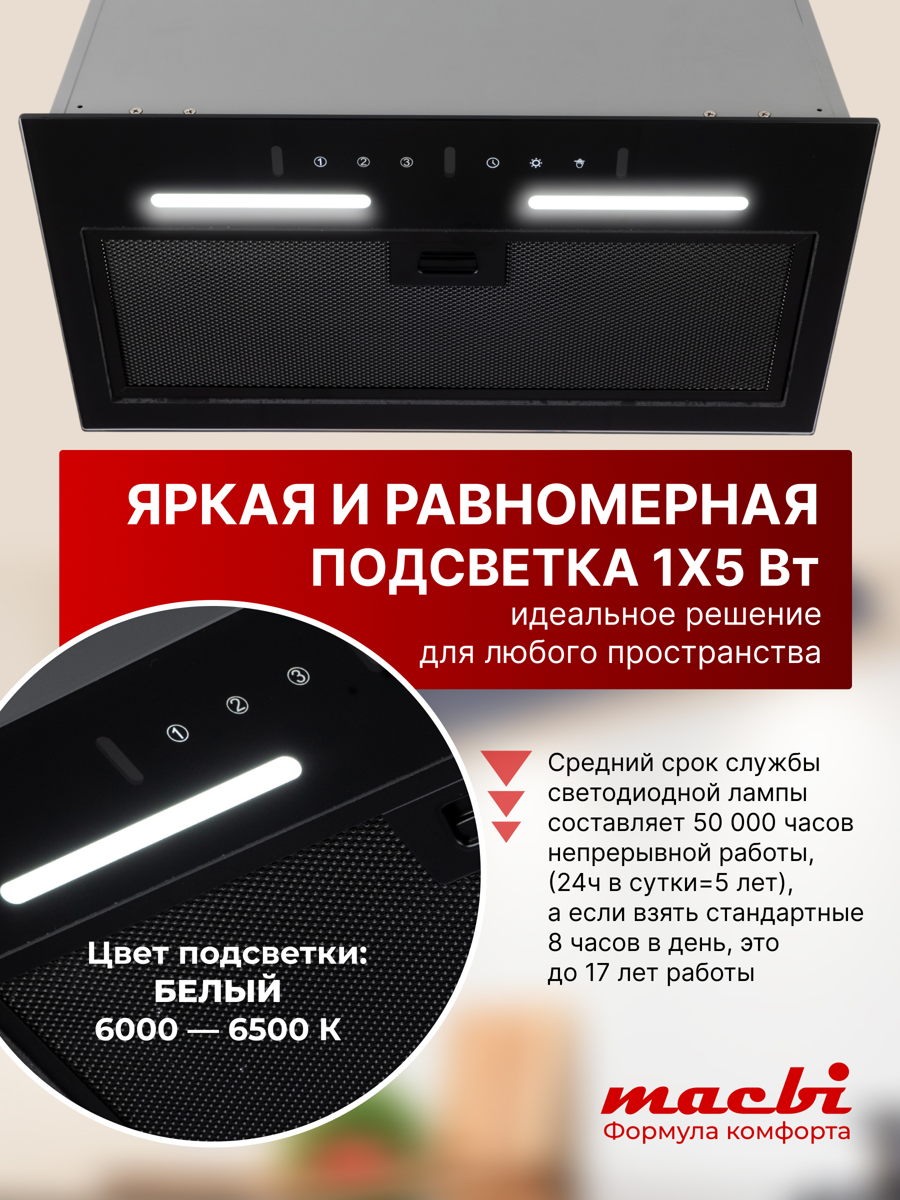 Представляем вашему вниманию вытяжку кухонную Macbi B-BoxG60G — идеальное решение для вашей кухни! Эта вытяжка встраиваемая, объединяет в себе стильный дизайн и высокую производительность, обеспечивая чистоту воздуха и комфорт на кухне.