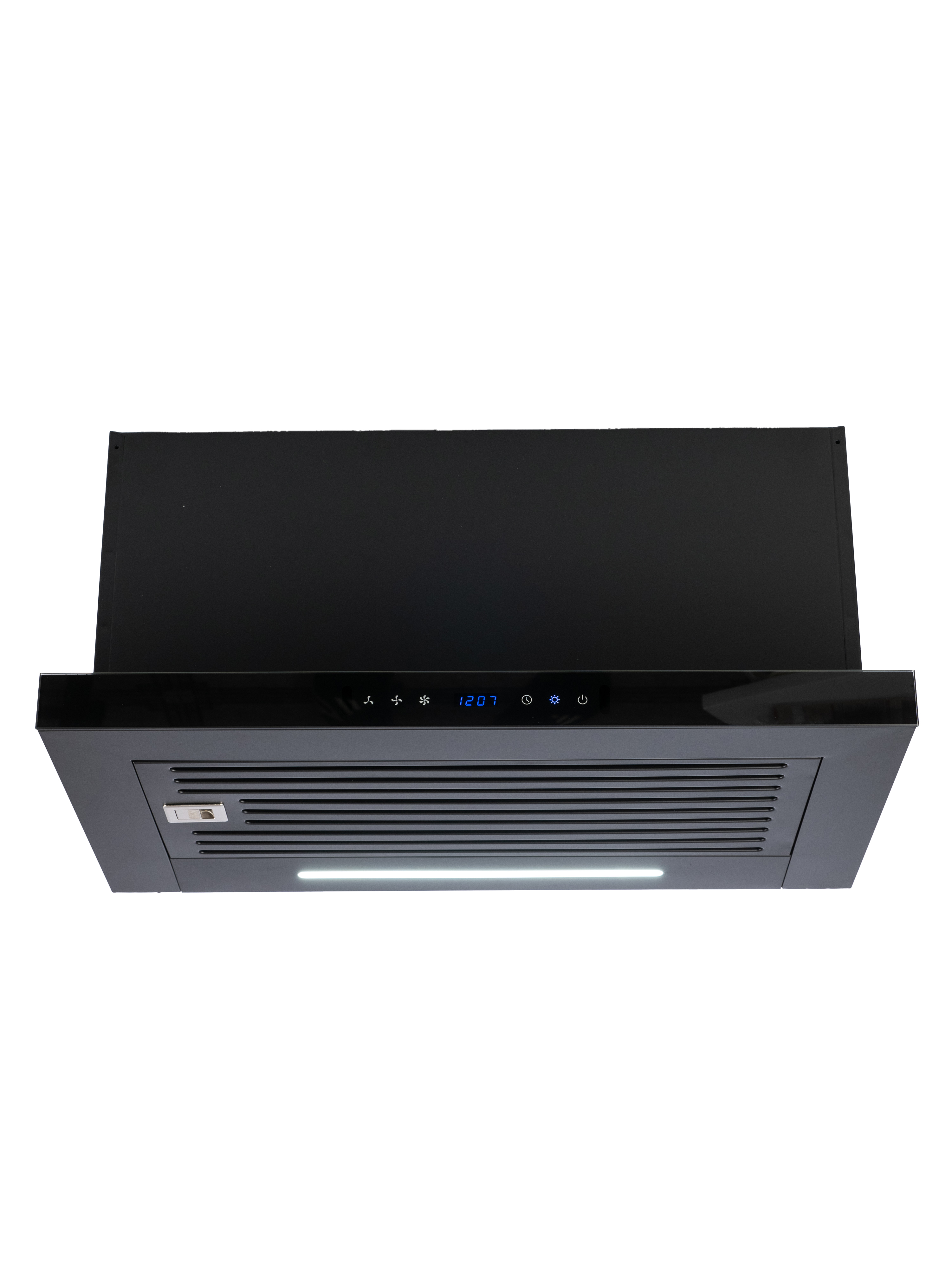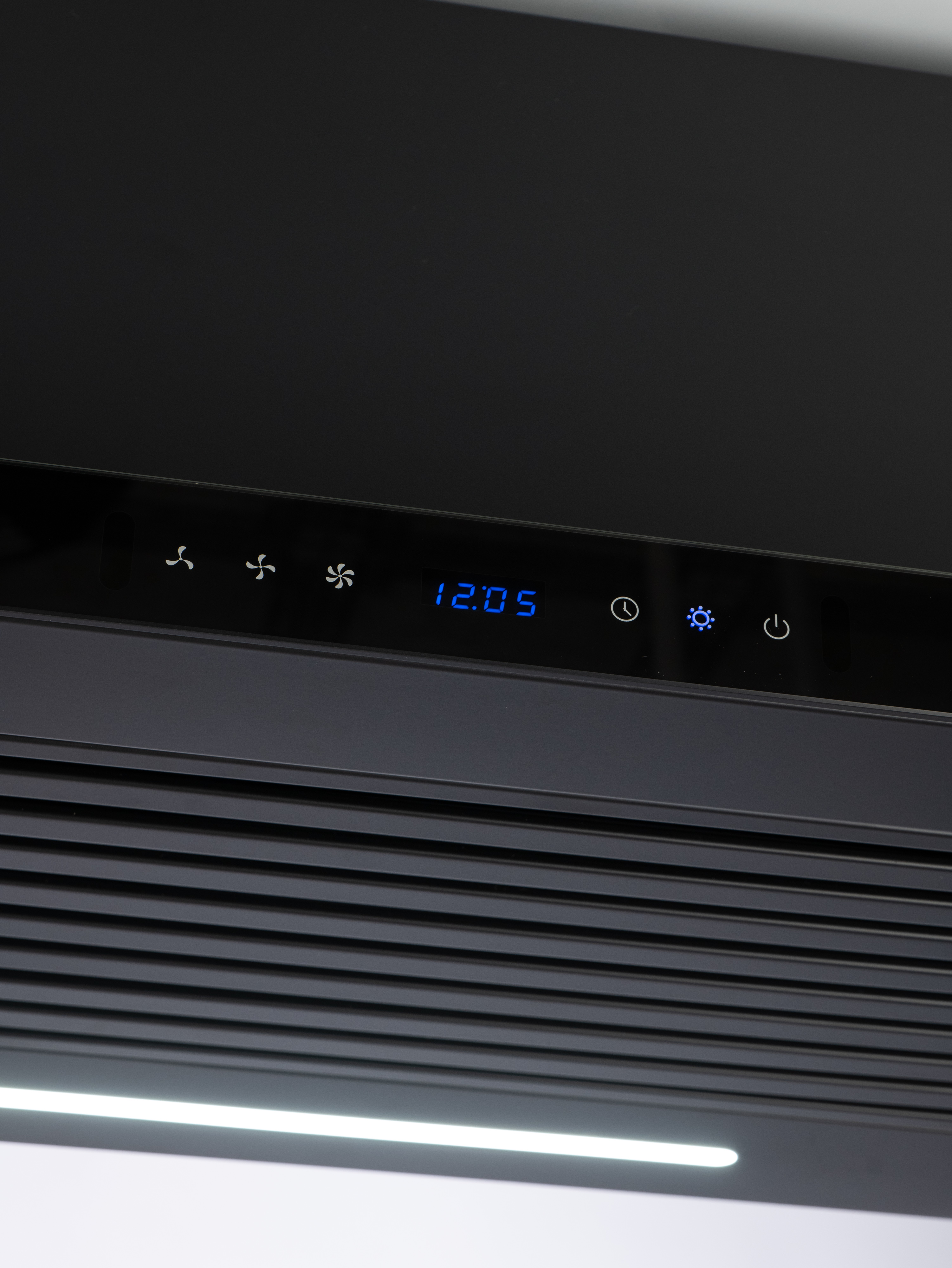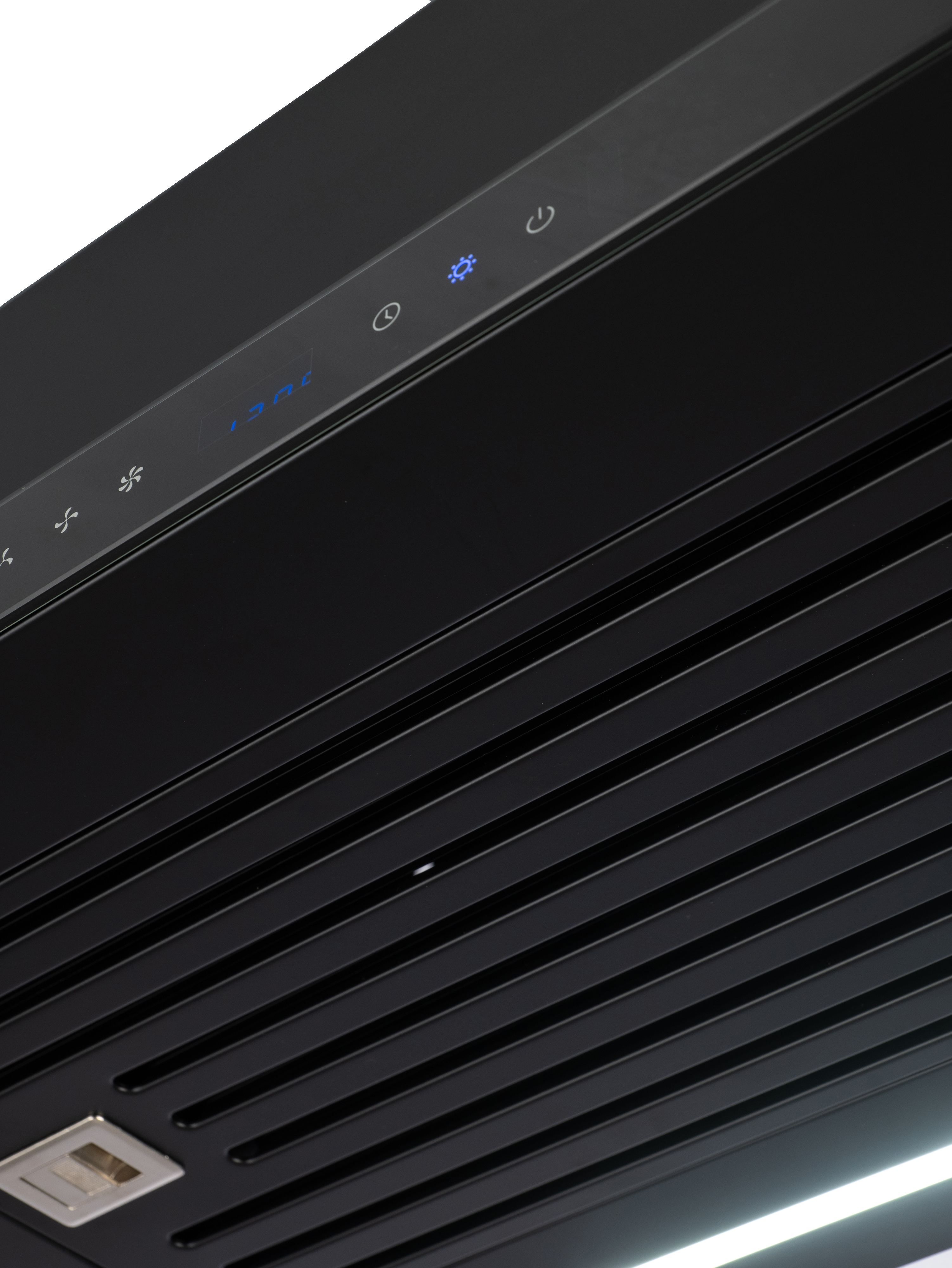 Современный дизайн и эргономичные элементы управления обеспечивают удобство использования. Вы можете легко регулировать мощность и скорость работы вытяжки с помощью сенсорного управления, которое также позволяет задавать задержку выключения и использовать интенсивный режим при необходимости.