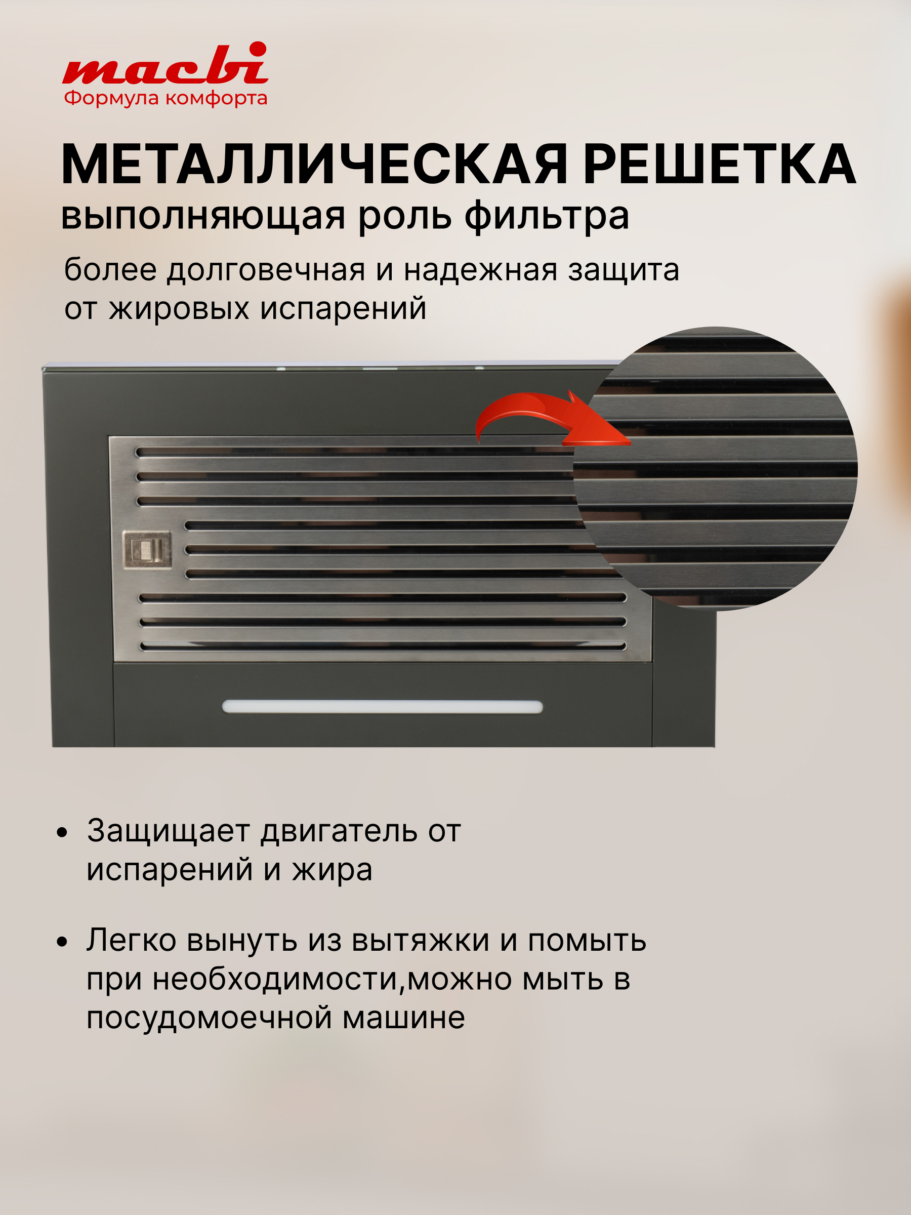 Не упустите возможность приобрести качественную встраиваемую вытяжку по доступной цене. Вытяжка Perfa-60G-baf (GREY) Macbi - это инвестиция в чистоту и комфорт вашей кухни, которая будет служить вам долгие годы.