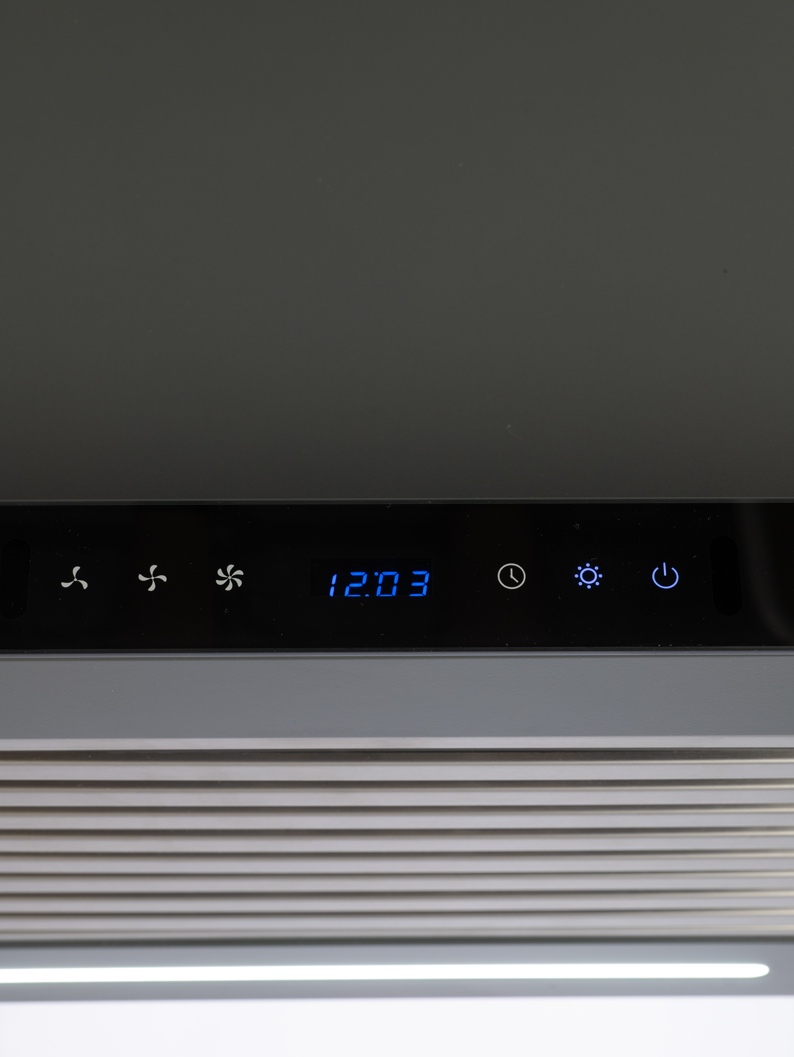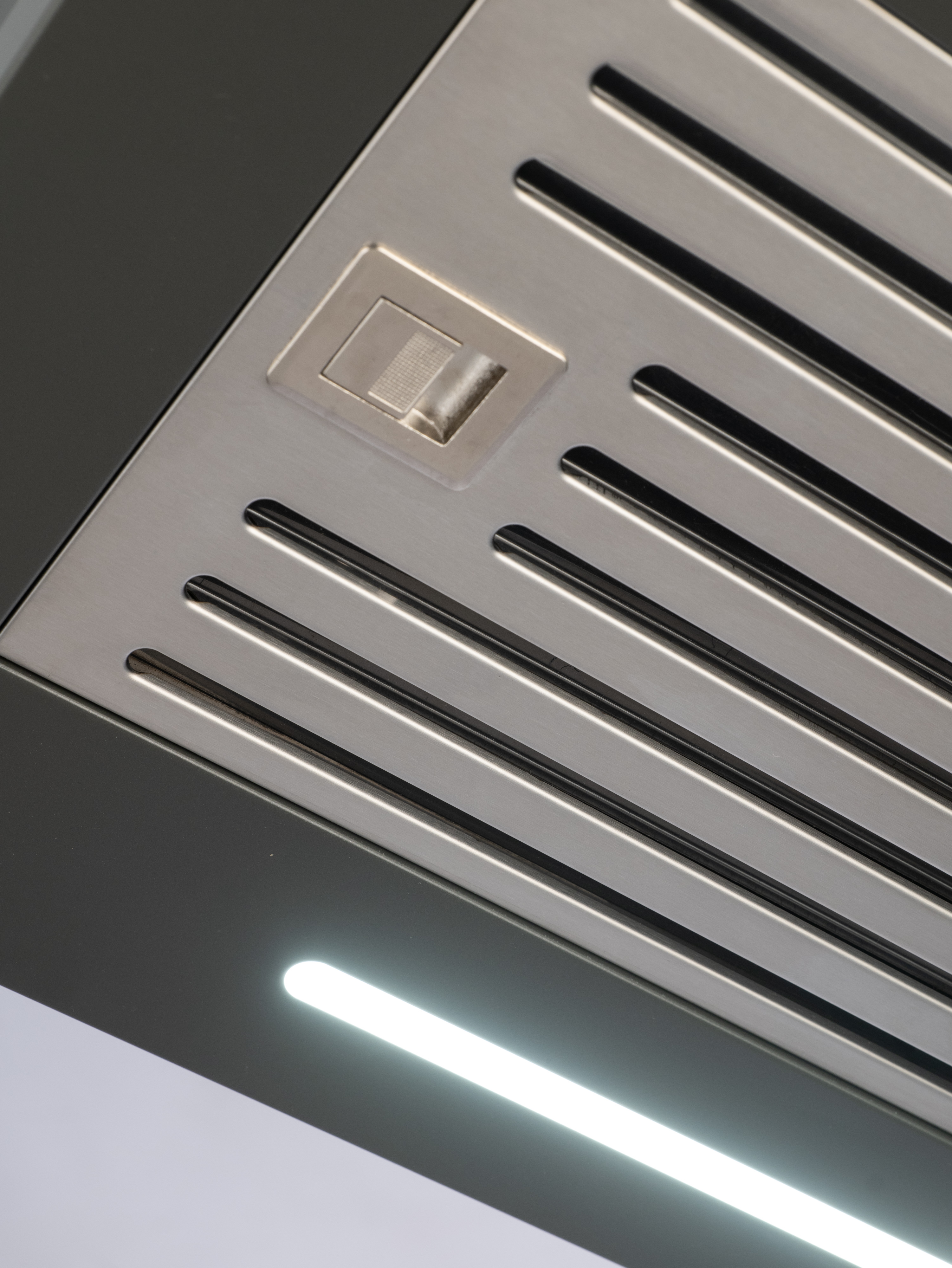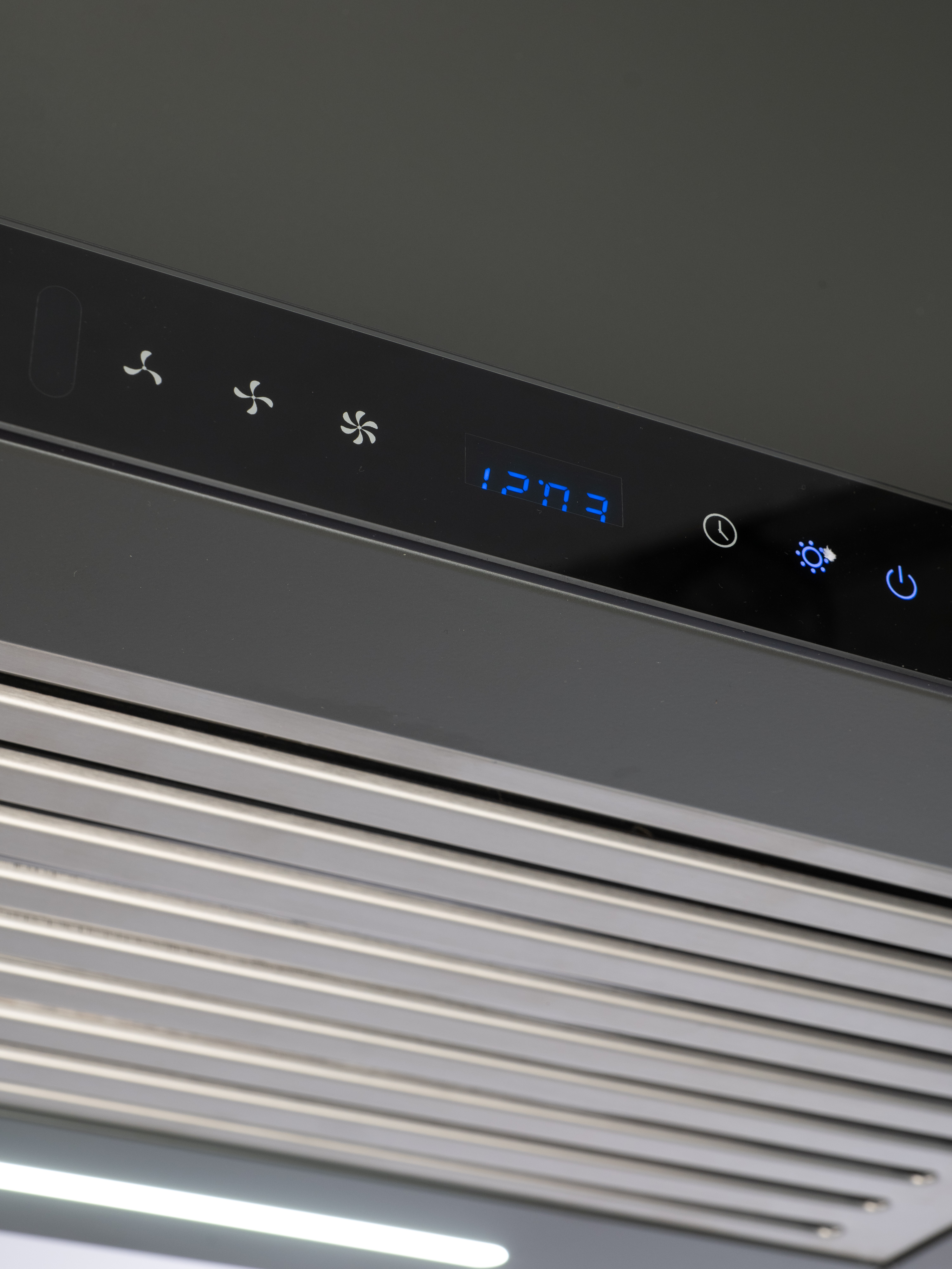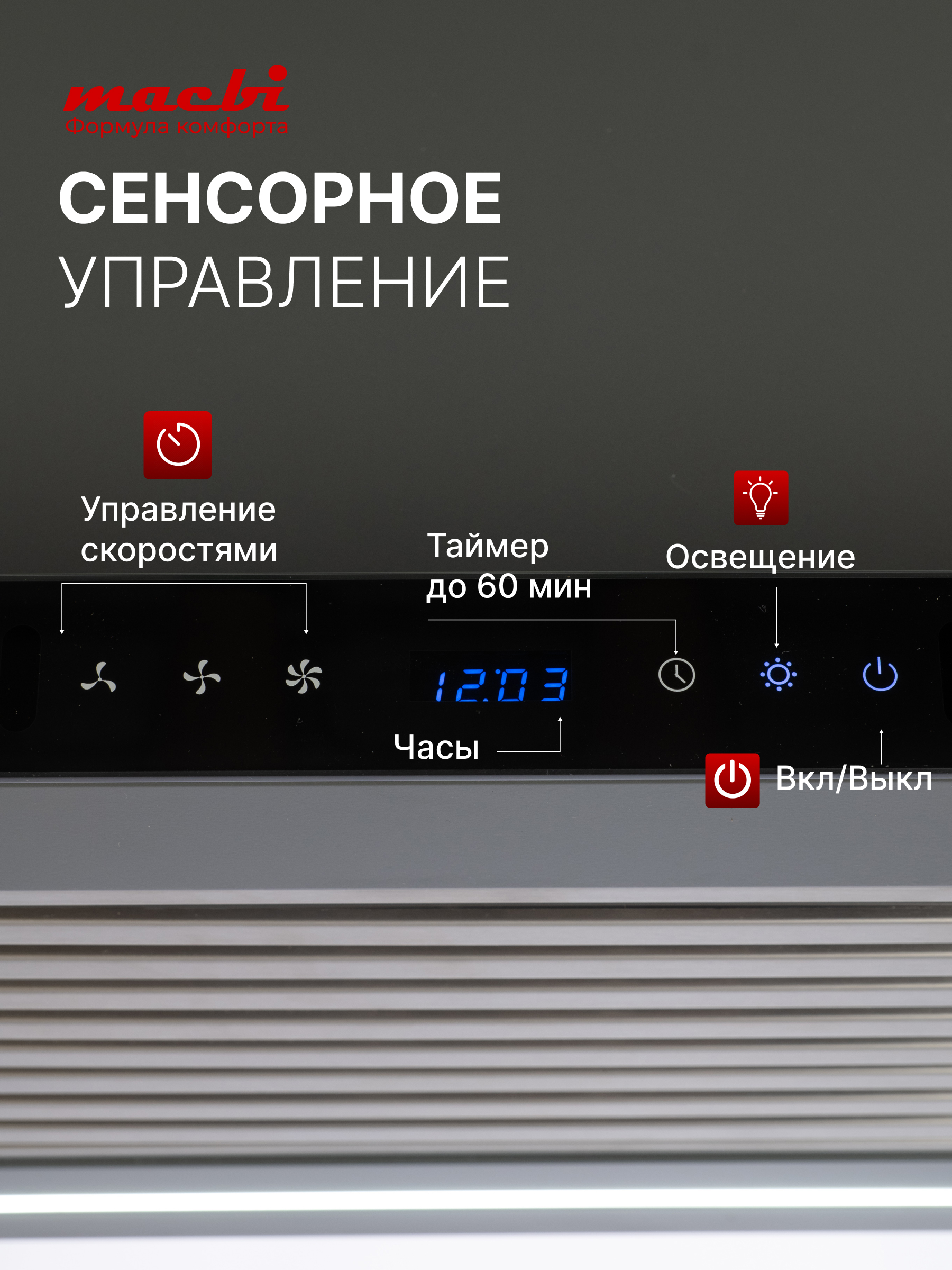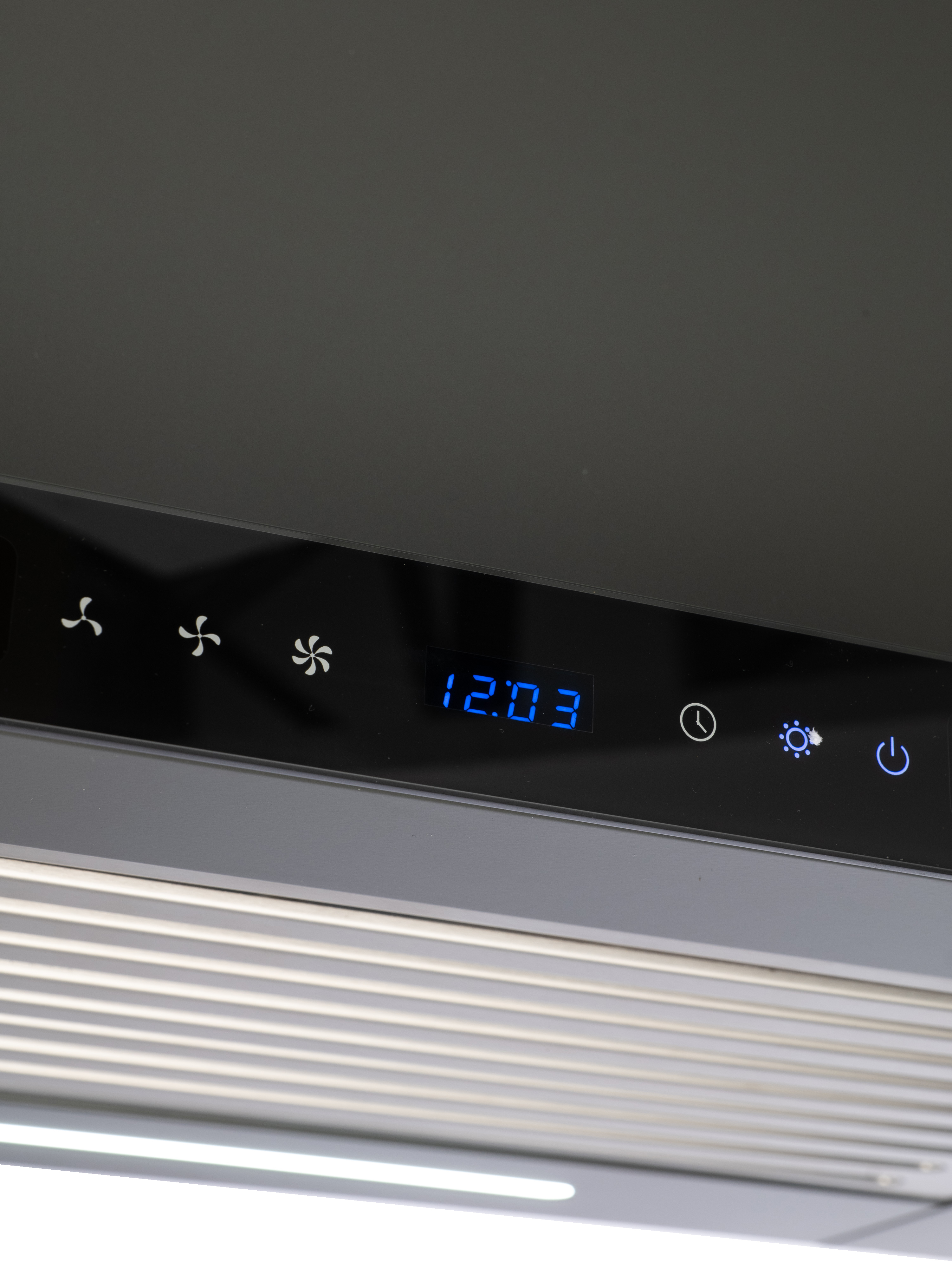 Современный дизайн и эргономичные элементы управления обеспечивают удобство использования. Вы можете легко регулировать мощность и скорость работы вытяжки с помощью сенсорного управления, которое также позволяет задавать задержку выключения и использовать интенсивный режим при необходимости.